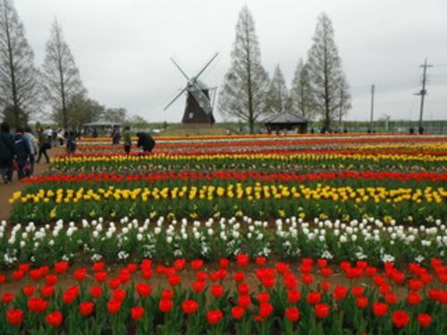 今日は朝のうちに、あけぼの山農業公園のチューリップを見に行ってきました。昼から雨の予報で実際に降った今日、朝から空は白い雲に覆われていましたが。 少し暗くてデジカメの露光が延びてしまい、写真では花の輪郭が少し膨張してしまいましたが、それでも…